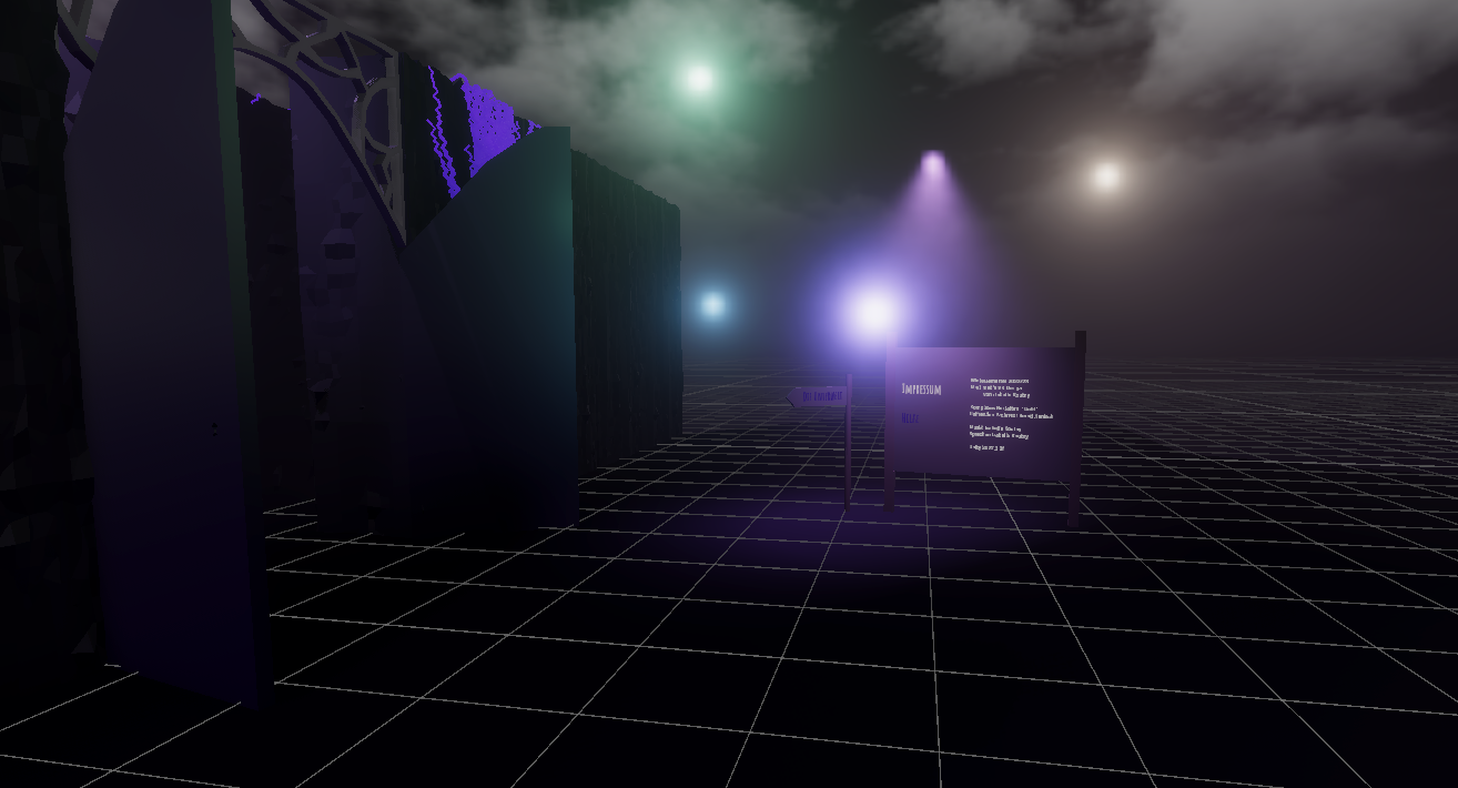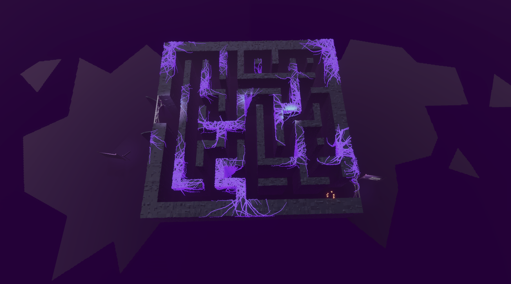 The labyrinth was designed to look dark and contemplative through the use of flat-colored objects that utilized light to highlight texture. The labyrinth itself was designed to make the player feel small by showcasing structures larger than the human form.