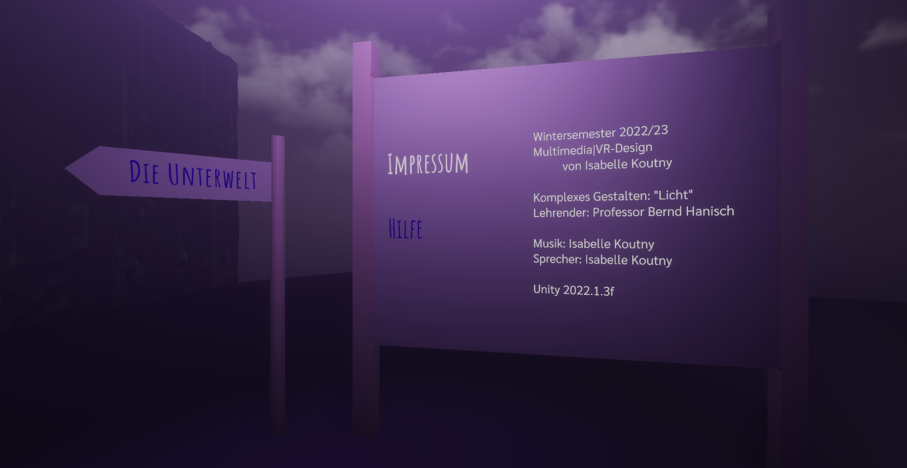 The lighting was inspired by stage performances to emphasize shadows and draw the user's attention. A simple user interface was chosen to keep interaction simple and allow the player to play out part of the myth.
